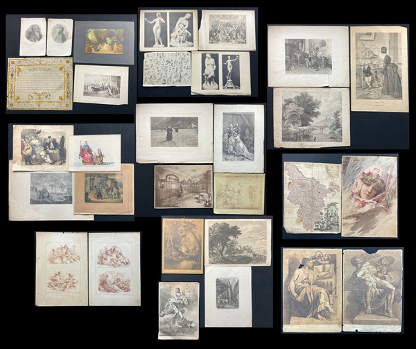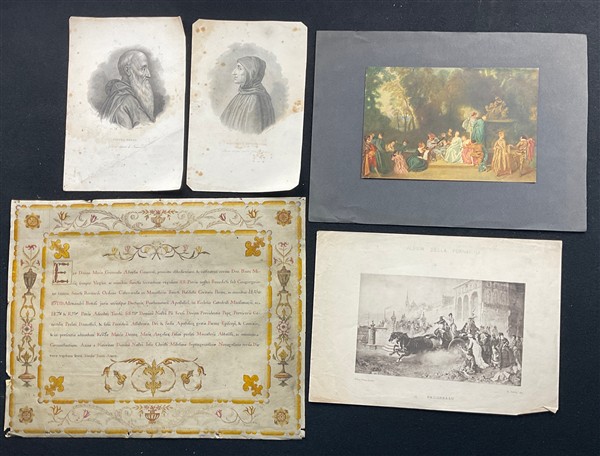 Lotto composto da numerose curiosità cartacee e antiche incisioni (difetti)