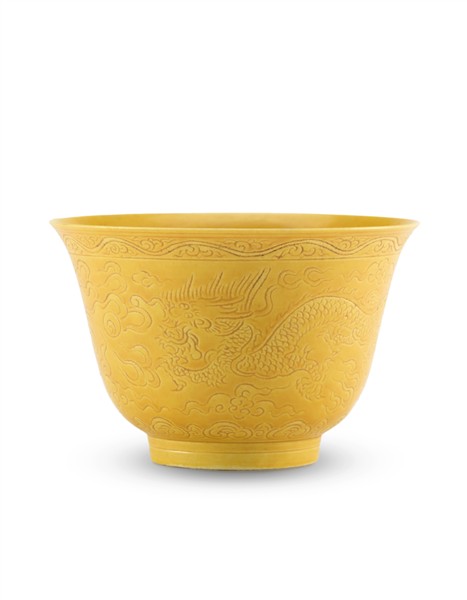 A yellow glazed incised dragon cup