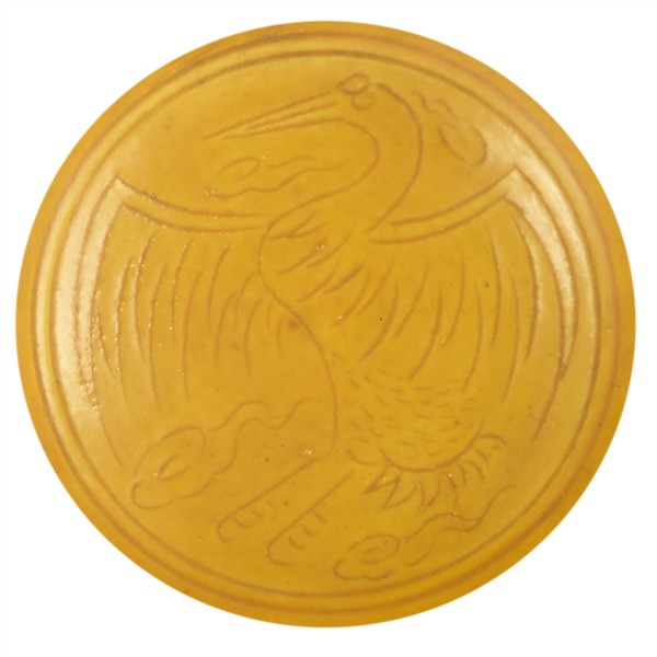 Tazzina in porcellana gialla decorata con draghi incisi all’esterno e gru all’i