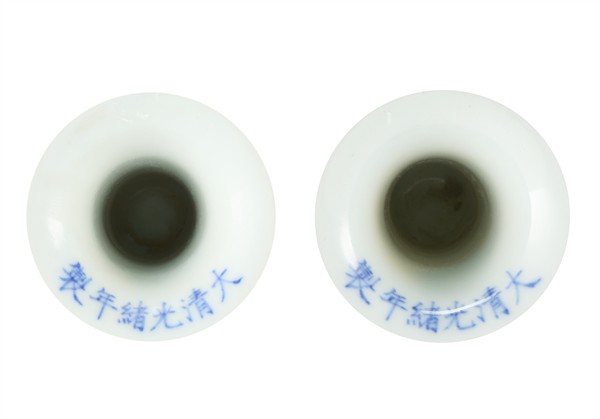 Coppia di stem cup in porcellana con invetriatura gialla decorate con draghi. Recanti marchio Guangxu