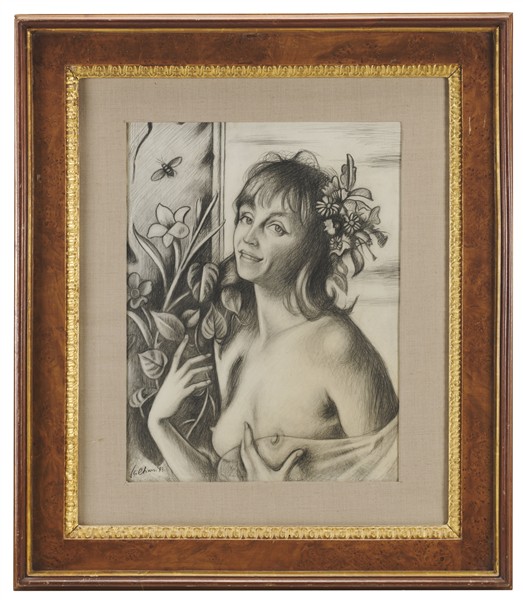 Gregorio Sciltian "Ritratto femminile" tecnica mista su carta (cm 50x30) in cor