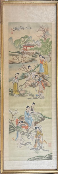 Lotto composto da nove diversi pannelli in carta di riso dipinta in policromia