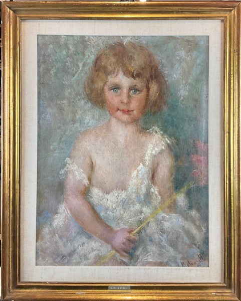 Giuseppe Maldarelli "Bambina con fiore" olio su tela (cm 55x42) firmato e datat