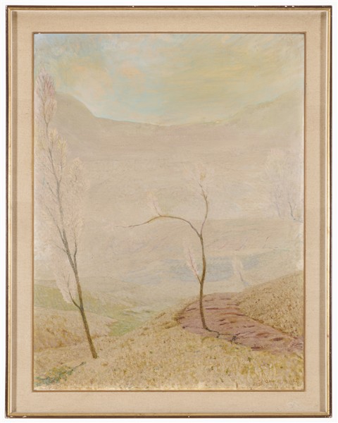 Oreste Albertini "Scorcio lacustre con albero" 1952 olio su tela (cm 128x98) fir