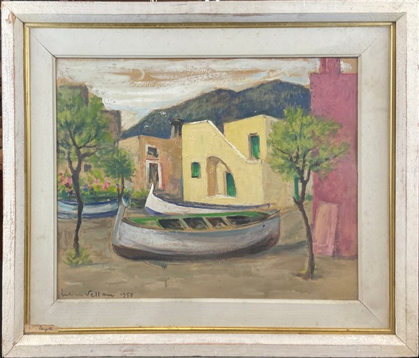 Felice Vellan "Varigotti" 1958 olio su cartone (cm 40x50) firmato e datato in ba