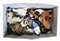 Scatola contenente numerose anatre souvenir in miniatura di manifatture differenti in vetro, pietra dura, ceramica ed altri materiali (difetti)
