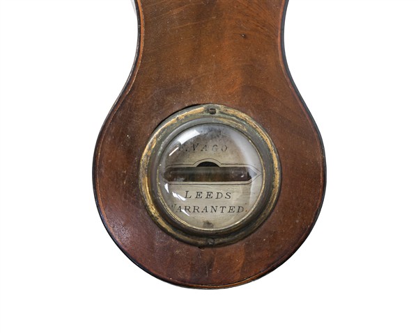 Barometro inglese in mogano filettato in legno chiaro con termometro del secolo