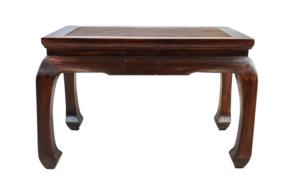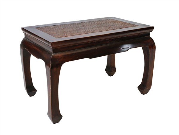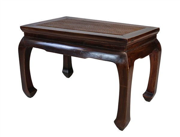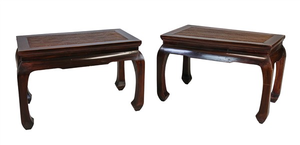 Coppia di tavolini in legno con piano in cannettillè. Cina, secolo XX (cm 79x51x49) (lievi difetti)