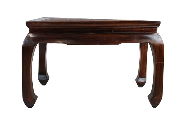 Coppia di tavolini in legno con piano in cannettillè. Cina, secolo XX (cm 79x51