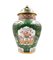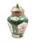 Manifattura del secolo XX. Potiche con coperchio in porcellana decorata in policromia a motivi orientali entro riserve su fondo verde con profili in oro. Iscritto sotto la base "Zinetta 20 giugno 1930" in oro (h cm 45) (lievi difetti)