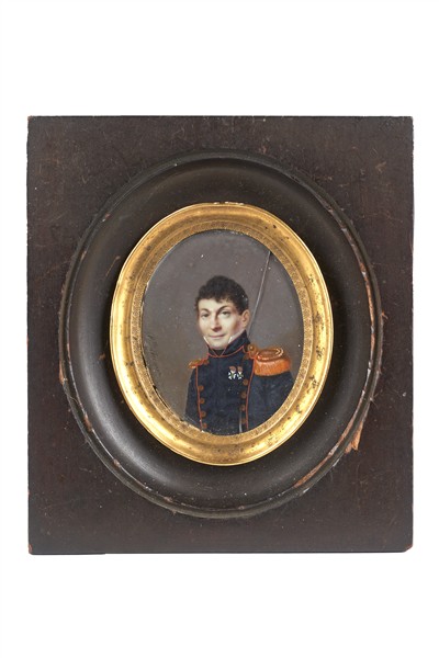 Mademoiselle Jacquot. "Ritratto del Comandante artigliere Jean Alexandre Tardif de Moidrey" miniatura ovale su avorio (cm 5,5x4,5) firmata a sinistra ed iscritta al retro. In cornice (lievi difetti)