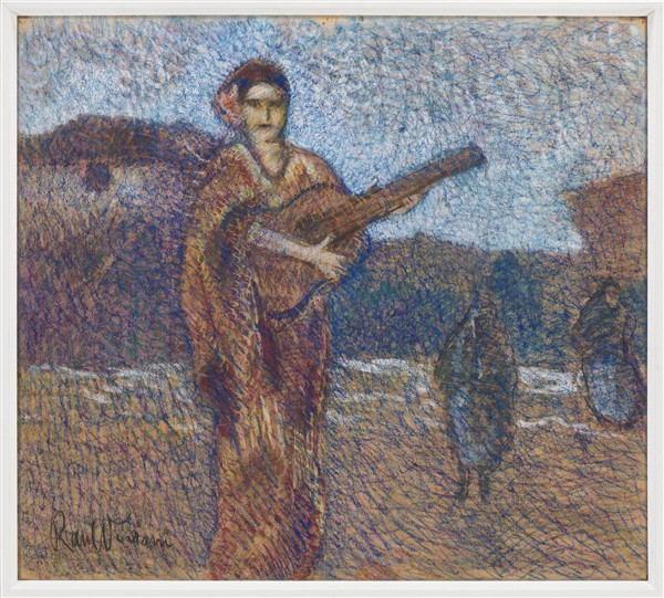 Raul Viviani "La cantante di strada" pastelli su cartoncino cm 70x79 firmato in