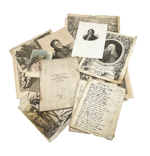 Lot 530 | Cartella contenente numerose incisioni, manoscritti e curiosità cartacee (difet