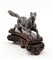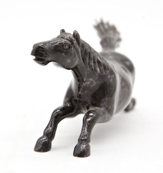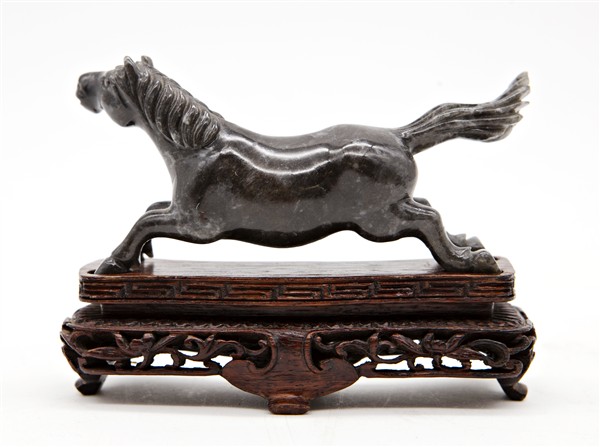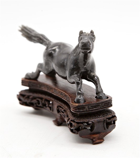 Piccolo cavallo in pietra dura nera Cina, secolo XX (L. cm 9) su base in legno