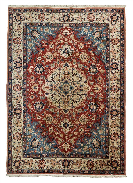 Tappeto Heritz, Persia, secolo XX. Decoro con grande medaglione e profili in po