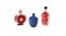 Lotto composto da due snuff bottle in vetro ed una in pietra dura blu.