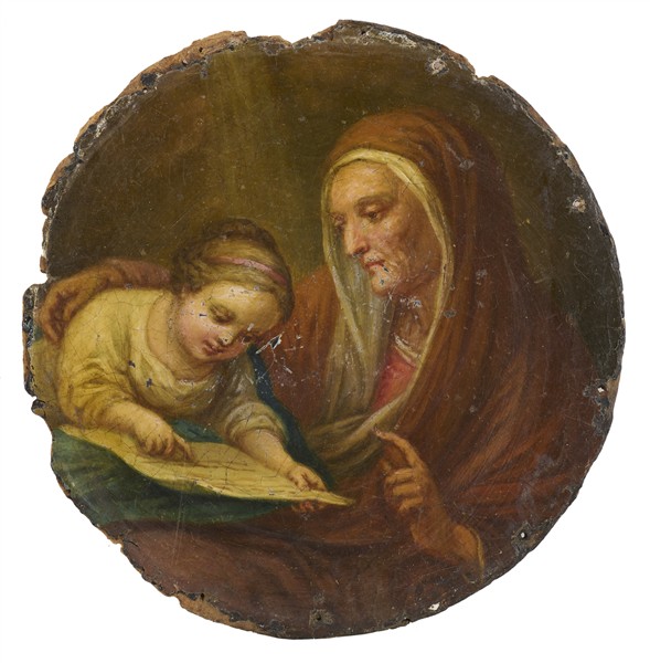Lot 611 | Scuola della fine del secolo XVIII "Educazione della Vergine" olio su cartone