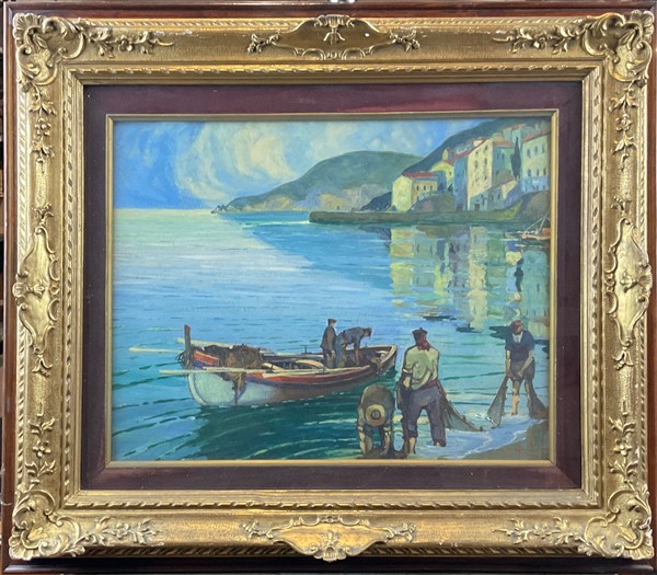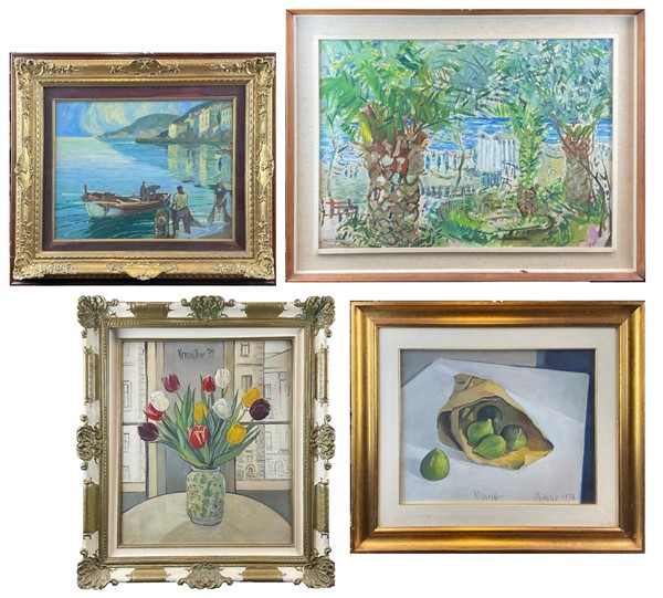 Lotto composto da tre oli su tela e uno su cartone pressato, di soggetti, autor