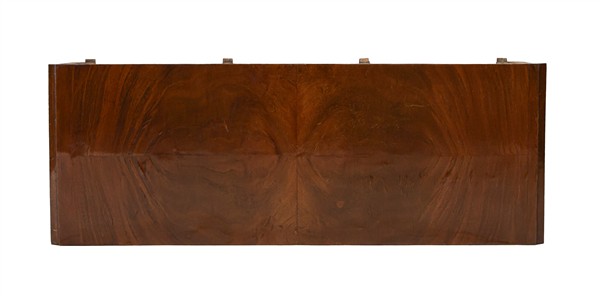 Tavolo allungabile di forma ovale impiallacciato in mogano e piuma di mogano, g