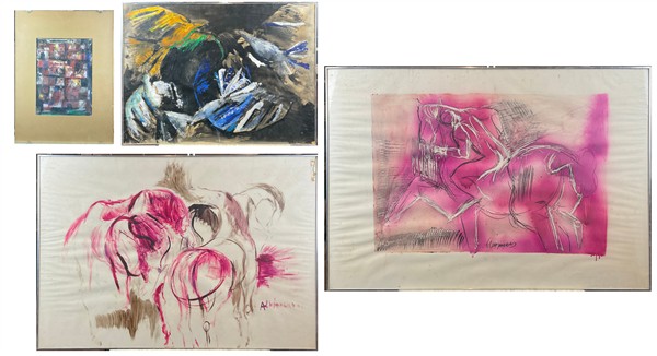 Lotto composto da quattro tecniche miste di Renato Bertoloni di soggetto e misu