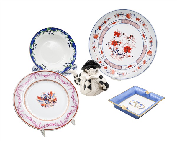 Lot 718 | Cartone contenente numerosi piatti ed altri oggetti di manifatture, epoche e di