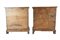 Coppia di mobiletti in noce con fronte mosso, uno ad un'anta con finti cassetti