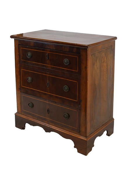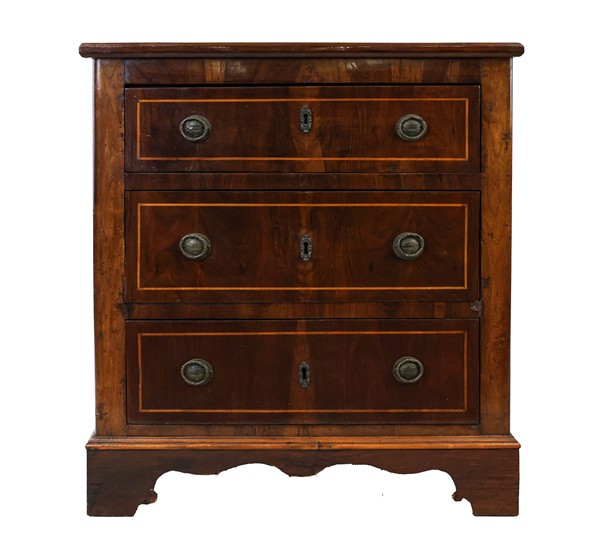 Lotto composto da due diversi mobili cassettiera in legni vari di cui uno con p