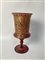Grande vaso a calice in vetro soffiato trasparente rosso decorato in oro a grottesche e a smalti policromi con la riproduzione de "La cena in casa Levi" di Paolo Veronese (h. cm 42). Prima metà secolo XX. (lievi difetti)