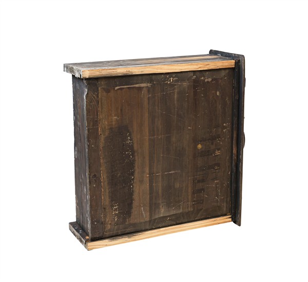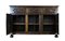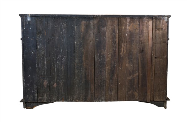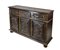 Antica credenza piemontese in legni vari a tre ante pannellate e tre cassetti i