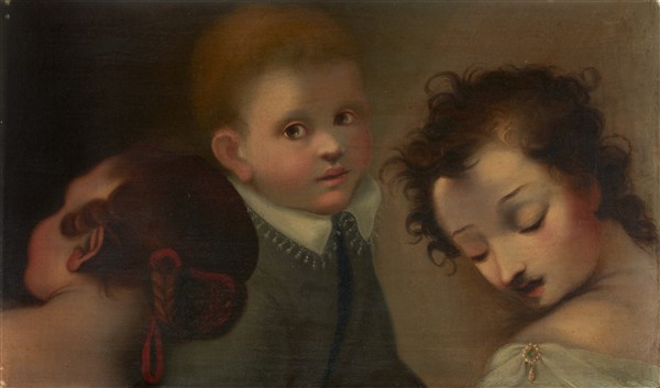 Scuola del secolo XVIII "Studio di teste di tre fanciulli" olio su tela (cm 37