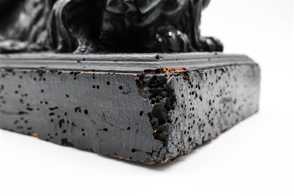 Arte del secolo XIX. Leone dormiente, legno intagliato ed ebanizzato (cm 33x15x17) (difetti e mancanze)