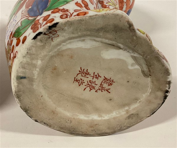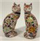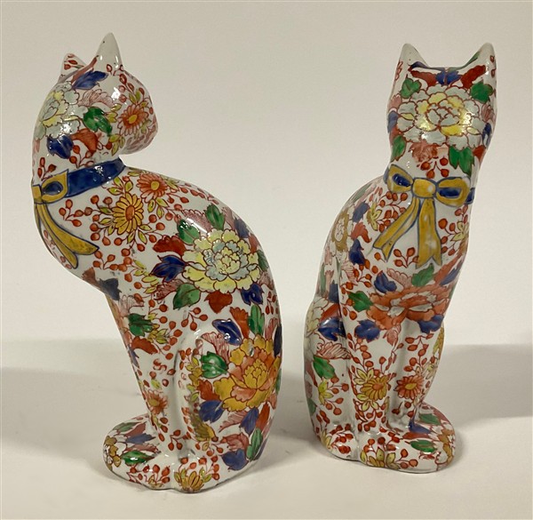 Coppia di gatti in porcellana policroma Imari decorati a motivi floreali e dora