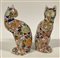 Coppia di gatti in porcellana policroma Imari decorati a motivi floreali e dorature. Cina, secolo XX (h. cm 28) (difetti)
