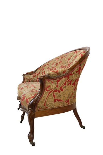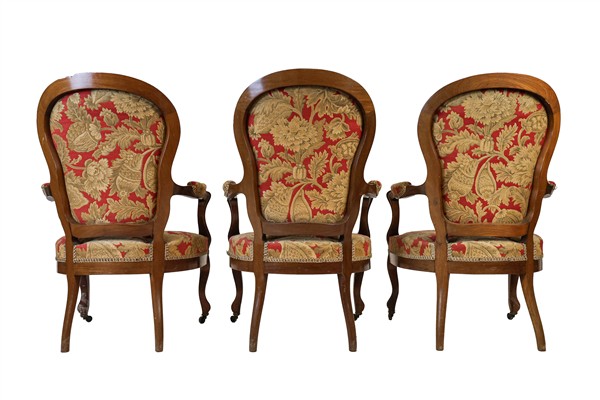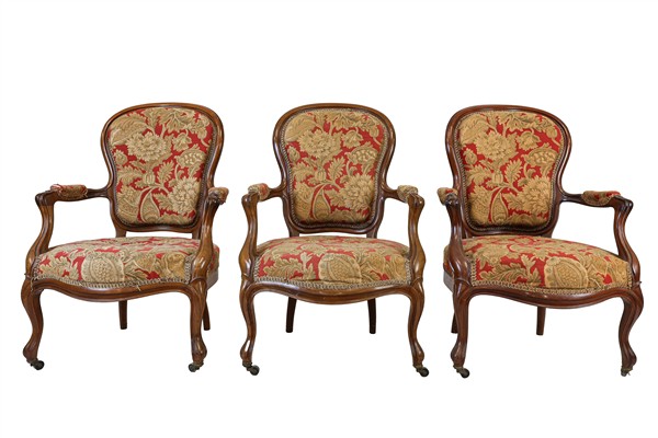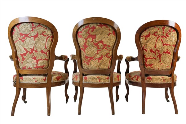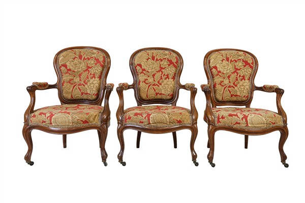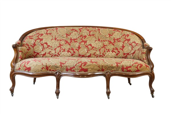 Lot 825 | Fornitura da salotto in noce, composto da divano e sei poltrone con bordure sca