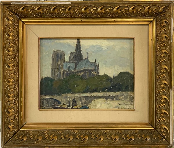 Lotto composto da tre dipinti ad olio su diversi supporti ed una tecnica mista raffiguranti "Paesaggi francesi" (cm max 45 x 60)