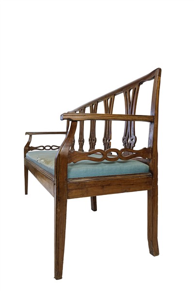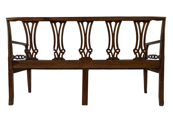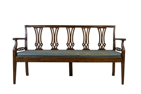 Lot 842 | Divano a tre posti in noce, schienale a giorno con cartelle sagomate e traforat
