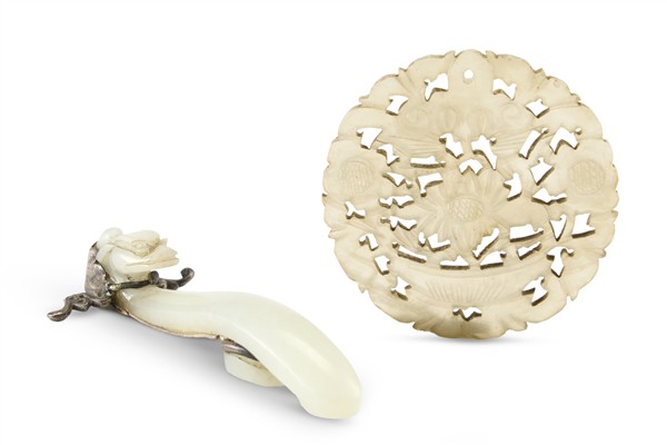 Lot 857 | Lotto composto da una placca rotonda in quarzo e una fibbia in giada Cina, seco