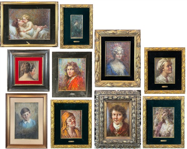 Lotto composto da dieci "Ritratti" di diversi autori tra cui Nazzareno Sidoli, ad olio su doversi supporti e di diverse misure, alcuni firmati
