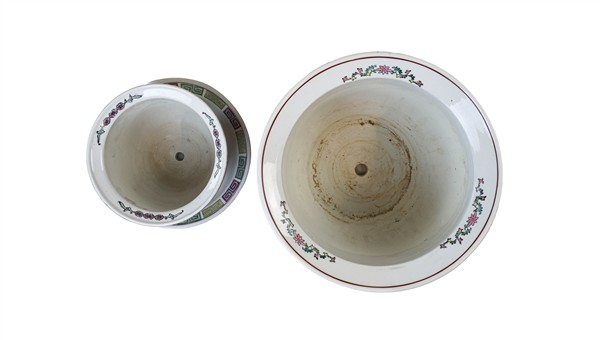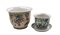 Lotto composto da quattro diversi cachepot e un sottovaso in porcellana decorat