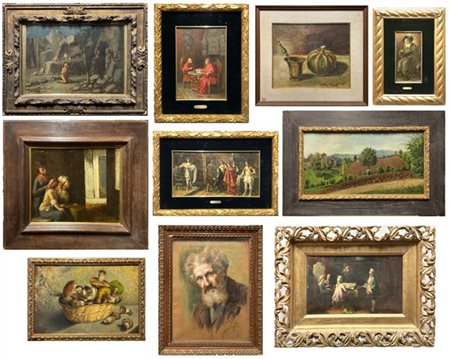 Lotto composto da dieci dipinti ad olio su diversi supporti, di diversi autori