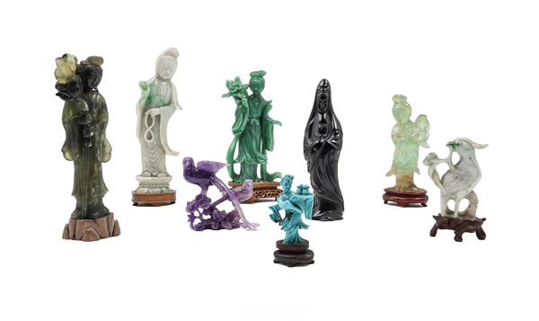 Lotto composto da numerose figure e sculture di animali in pietra dura, ceramica ed altri materiali. Cina, secolo XIX-XX (misure diverse) (difetti e rotture)