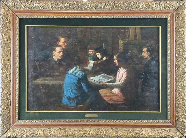 Lotto composto da sei dipinti ad olio raffiguranti "Scene di genere", di diversi autori tra cui Nazzareno Sidoli, di diversi supporti e misure (cm max 47 x 75)