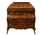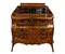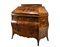 Antica ribalta a urna, lastronata in noce, radica ed intarsiata in legni di var