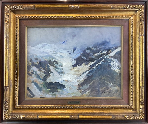 Carlo Cressini "Ghiacciaio" olio su compensato (cm 29x40) firmato in basso a de