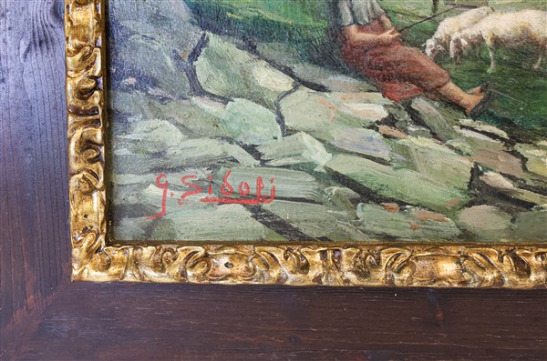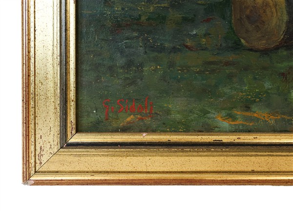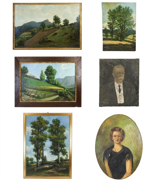Lotto composto da sei dipinti di diversi autori tra cui Carla e Giuseppe Sidoli, di diversi soggetti, ad olio su diversi supporti e di misure, alcuni firmati (cm max 100 x 70)