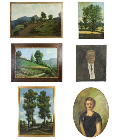 Lotto composto da sei dipinti di diversi autori tra cui Carla e Giuseppe Sidoli