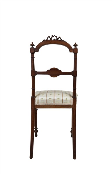 Gruppo di quattro sedie con schienale a giorno e cimasa traforata a nastro, gam