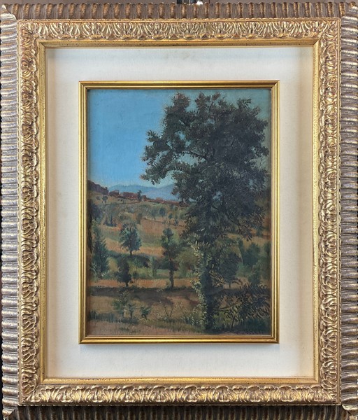 Carlo Socrate "Scorcio boschivo" olio su tela (cm 40x30) firmato in basso a des