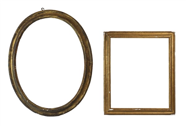 Lotto di sette antiche cornici in legno, alcune dorate, di misure ed epoche div