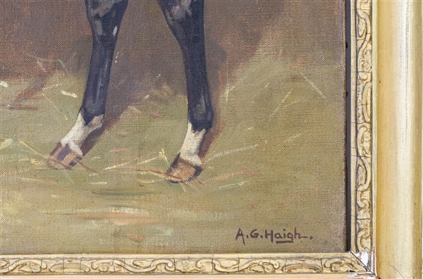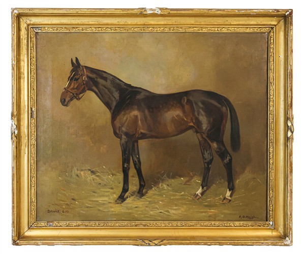 Alfred Grenfell Haigh "Il purosangue Drake" olio su tela (cm 51x61,5) firmato i